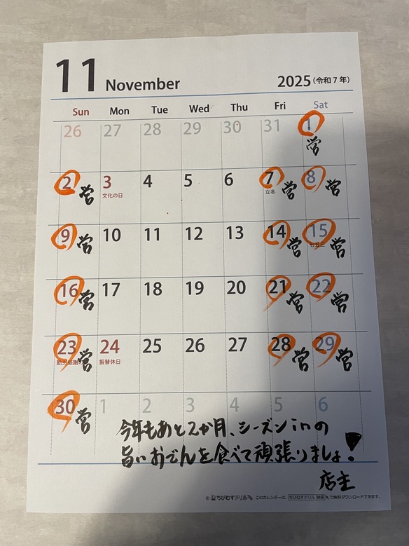 かなり寒くなってきましたねー。おでんシーズンインだから、今月は金土日お休みしませんので、ご来店お待ちしております。