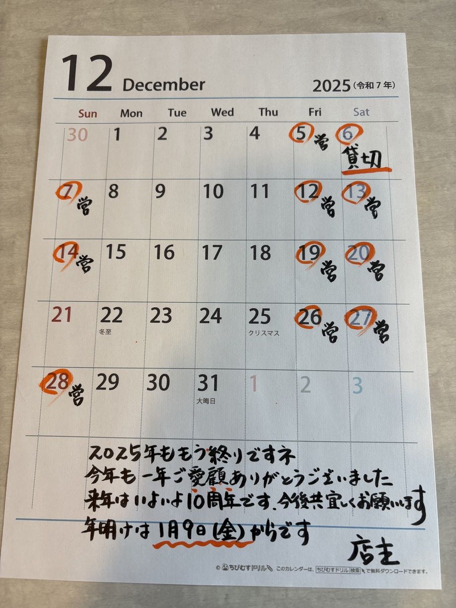 ※12/6は貸切 ※年内は12/28までで年明けは1/9です